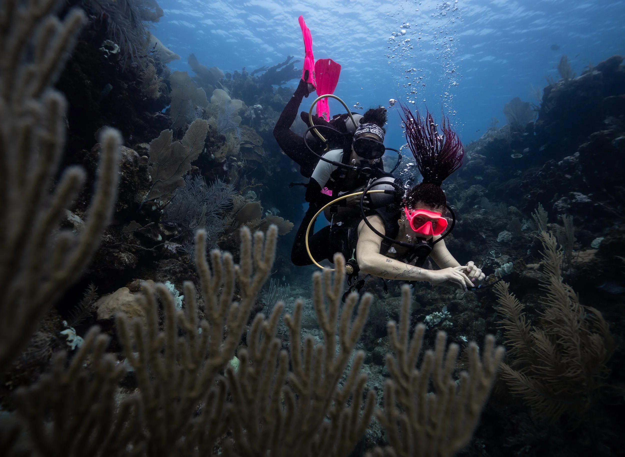 Before diving, we take time to review key concepts together and talk through anything that feels uncertain. Once in the water, dives are intentionally unrushed, with space for feedback, adjustment, and exploration.
